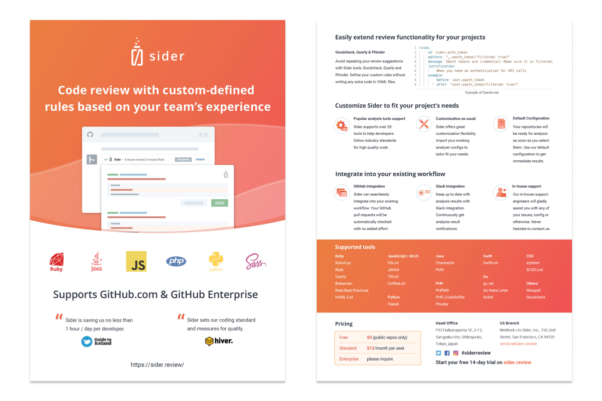 Sider is a Japanese company that makes developer tools. Although they are known in the development community in Tokyo they don't have much reach outside of Japan and required marketing material for an English speaking audience.